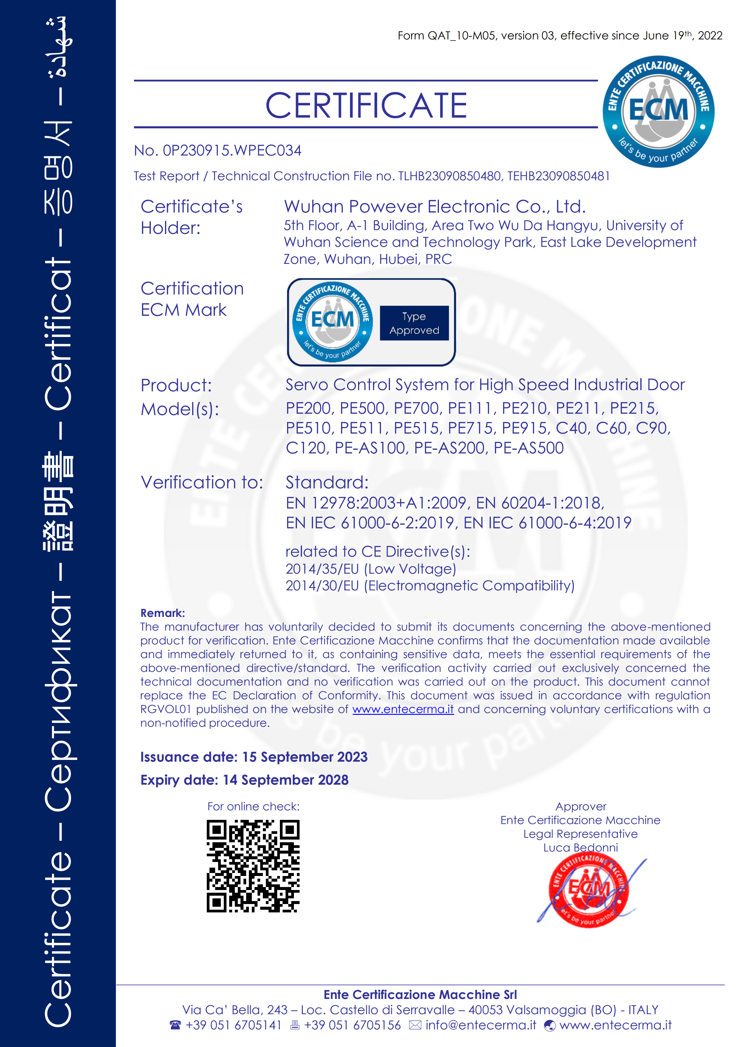 Мощность систем сервопривода быстрого двери, производимых компанией, составляет: 0,75 КВт, 1,5 КВт, 2,2 КВт, 3,8 КВт. Они могут быть адаптированы для мягких быстрых рольставных дверей, мягких быстрых складных дверей и жестких турбо-быстрых дверей. Все продукты компании прошли сертификацию CE и тестирование ICES.